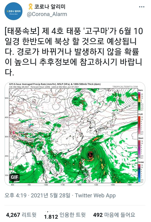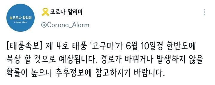 시민들은 오히려 아직 발생하지도 않은 제4호 태풍 '고구마(koguma)'에 집중했다.